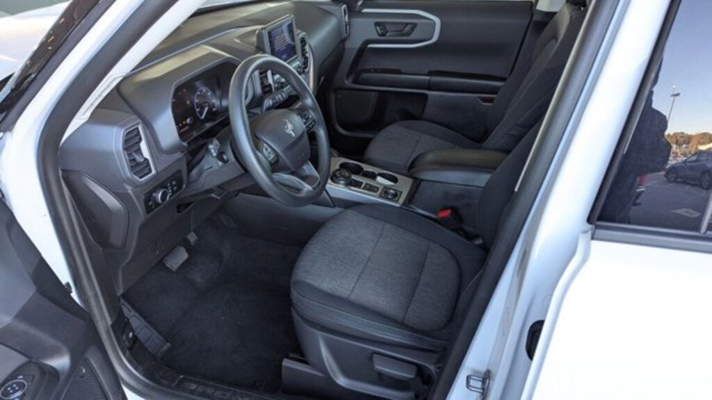Scores 29 Highway MPG and 25 City MPG! This Ford Bronco Sport delivers a Intercooled Turbo Regular Unleaded I-3 1.5 L/91 engine powering this Automatic transmission. EQUIPMENT GROUP 200A, ENGINE: 1.5L ECOBOOST -inc: auto start-stop technology (STD), EBONY, UNIQUE CLOTH FRONT BUCKET SEATS -inc: easy to clean cloth, 6-way manual driver (fore/aft, up/down, recline) and 4-way manual passenger (fore/aft w/manual recline) seats.